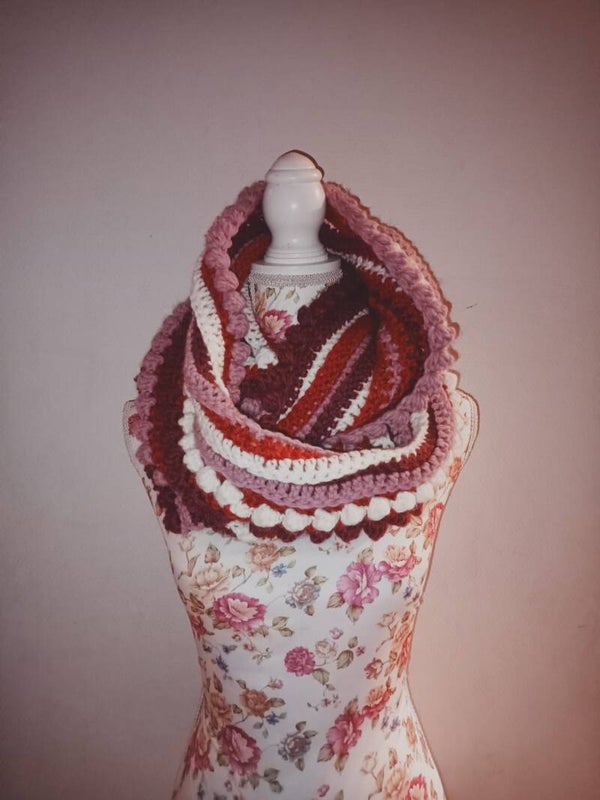 Zachte colsjaal in roze tinten met bijpassende hoofdband.